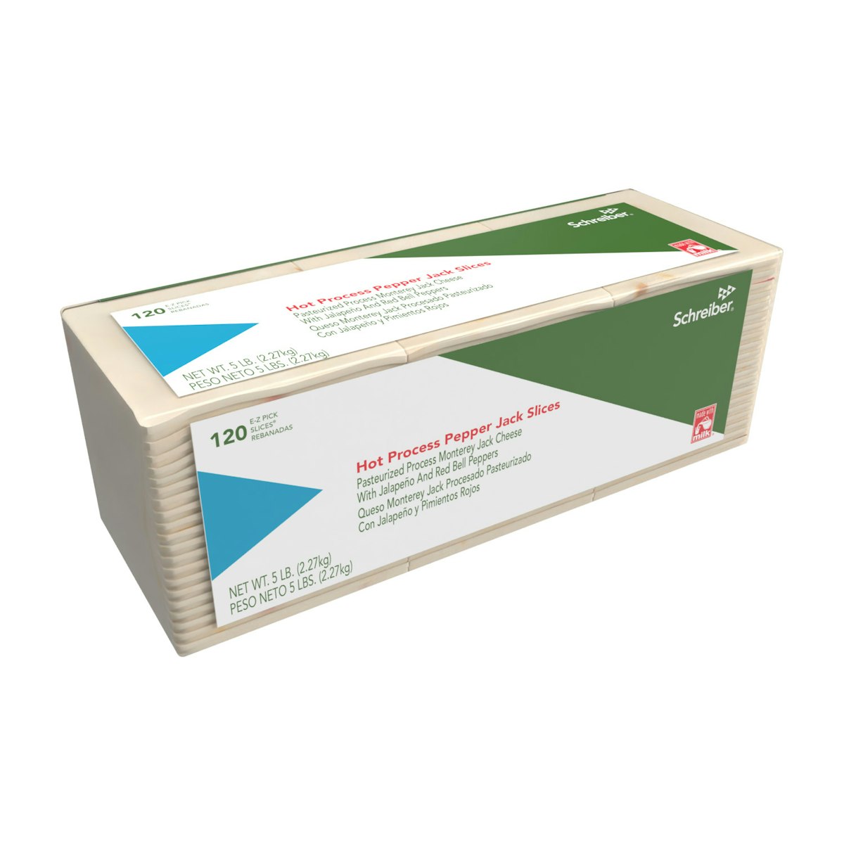 SCHREIBER PASTEURIZED PROCESS PEPPER JACK SLICES – 4/5# 120 SLICES
