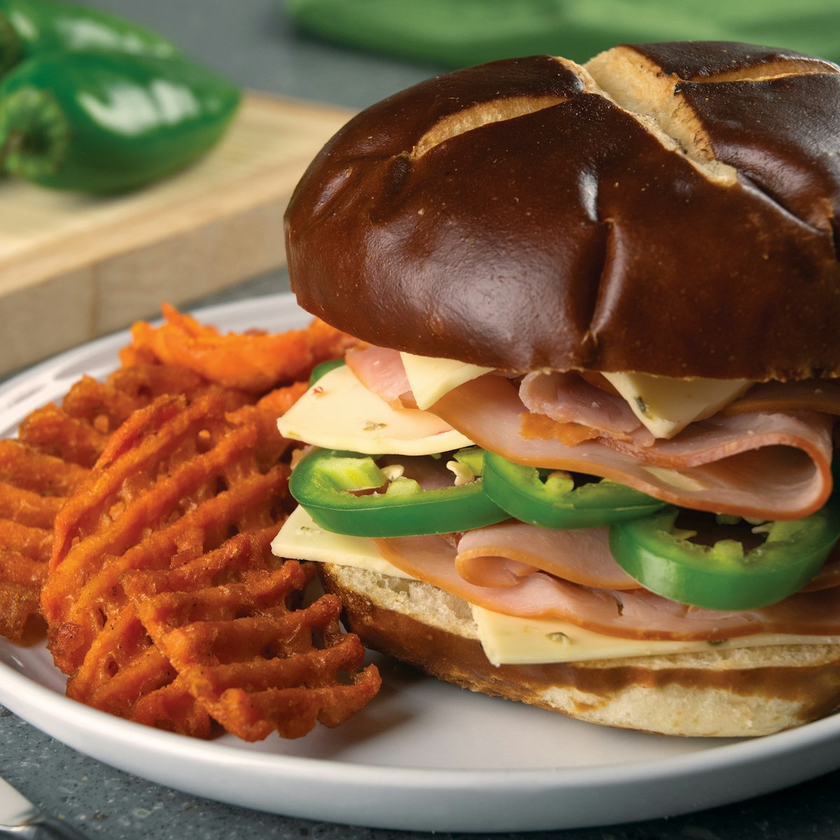 Schreiber Pasteurized Process Pepper Jack Slices are your go-to for convenience, flavor, and all-around melty goodness! With their slightly salty Monterey Jack flavor profile and a hint of mild heat from peppers, they’re perfect for giving your menu items an extra kick of deliciousness. Ready-to-eat and hassle-free, they require no prep, so they’re perfect for any meal occasion from breakfast sandwiches to juicy burgers to adding a spicy twist to your consumers’ favorite grilled cheese sandwich.
